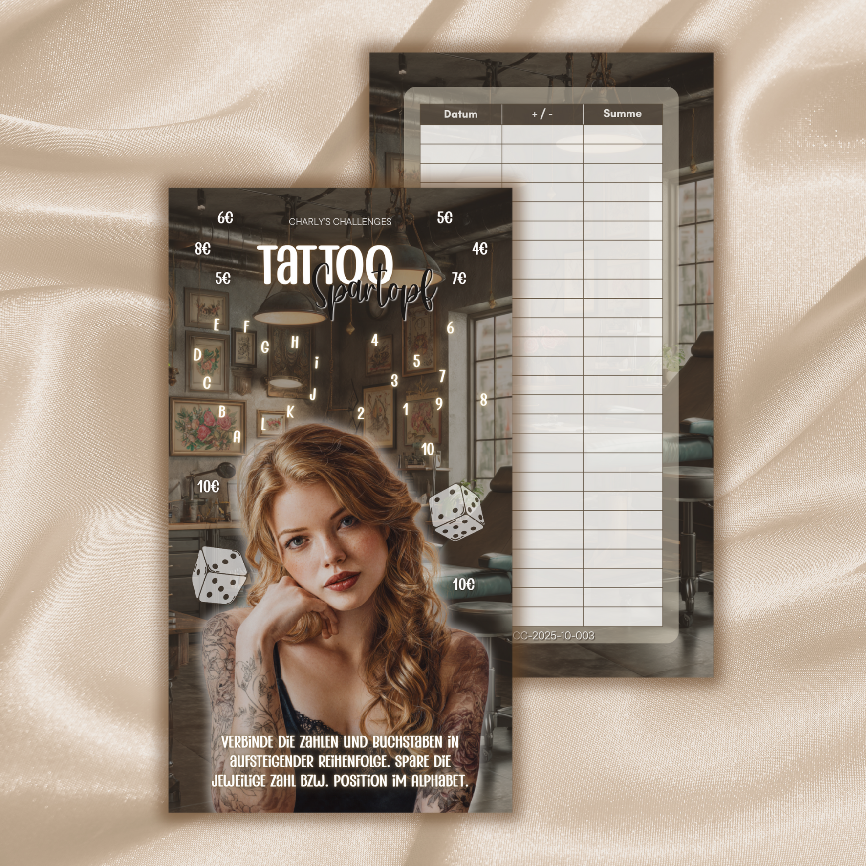 Neues Ink-Projekt geplant? Mit diesem Tattoo-Spartopf legst du Schritt für Schritt dein Wunschbudget zurück – egal ob kleines Motiv oder großflächiges Kunstwerk. Jeder Betrag bringt dich näher zu deiner nächsten Session beim Tattoo-Artist. Perfekt für alle, die Träume lieber unter die Haut als auf die lange Bank schieben. 💉✨